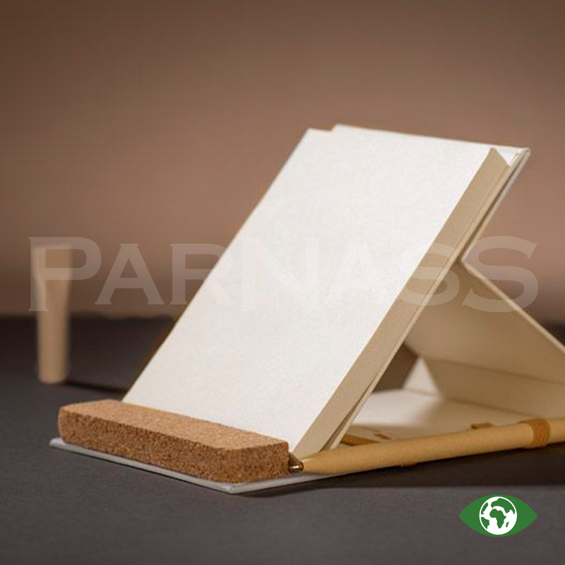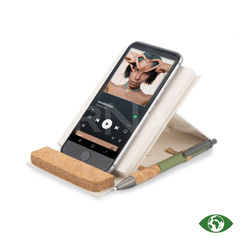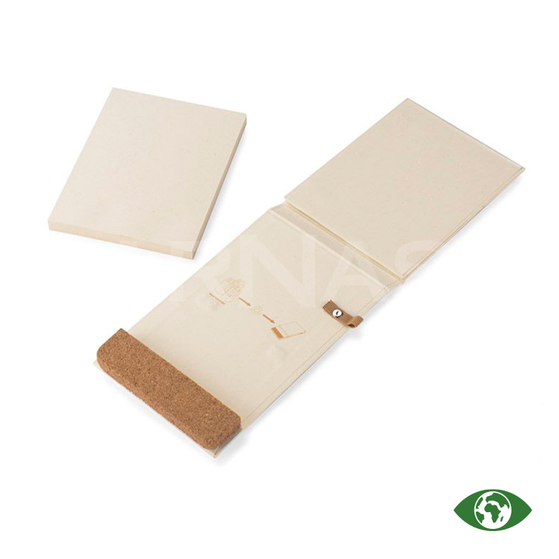 Piezīmju bloka vāks un lapas ir izgatavoti no piena iepakojumu kartona. Vāks aizveras ar elastīgu gumiju. Korķa elements ļauj no klades izveidot telefona statīvu. Kladei ir 80 tukšas lapas.