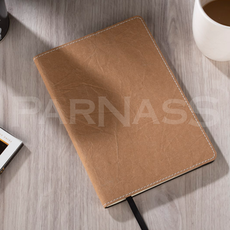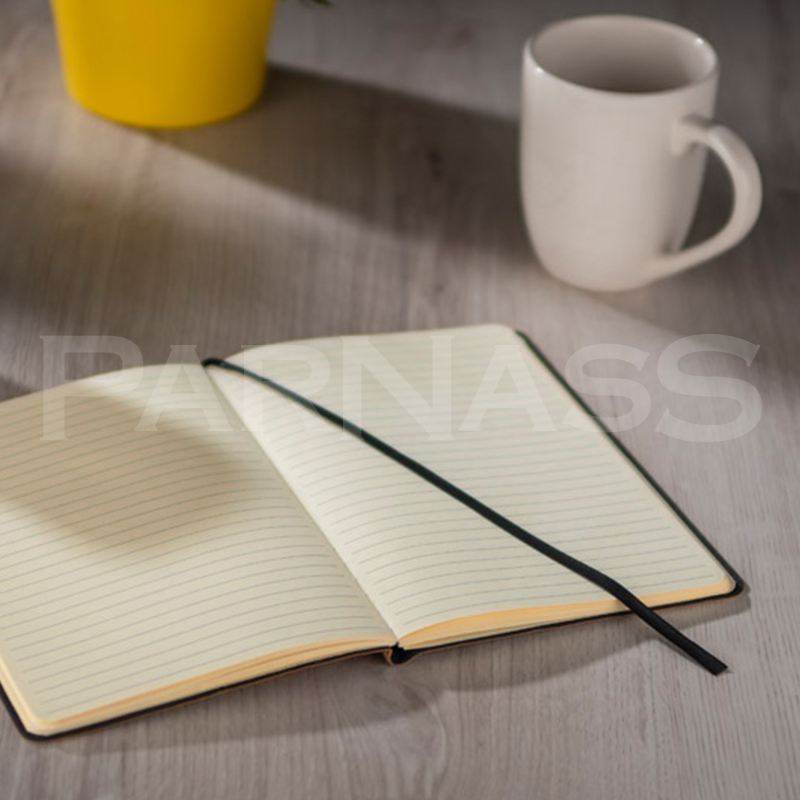 Bloka vāka papīrs ir viegli saburzīts, kas piešķir blokam nteresantu un dabisku izskatu. Vāka malas ir apšūtas ar baltu diegu, bet bloka iekšpusē ievietota melna lentīte – grāmatzīme. Blokā ir 80 līniju lapas.