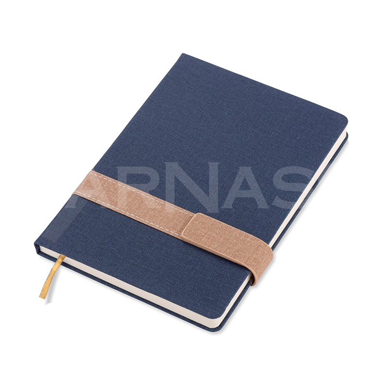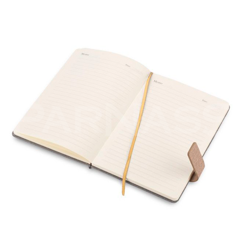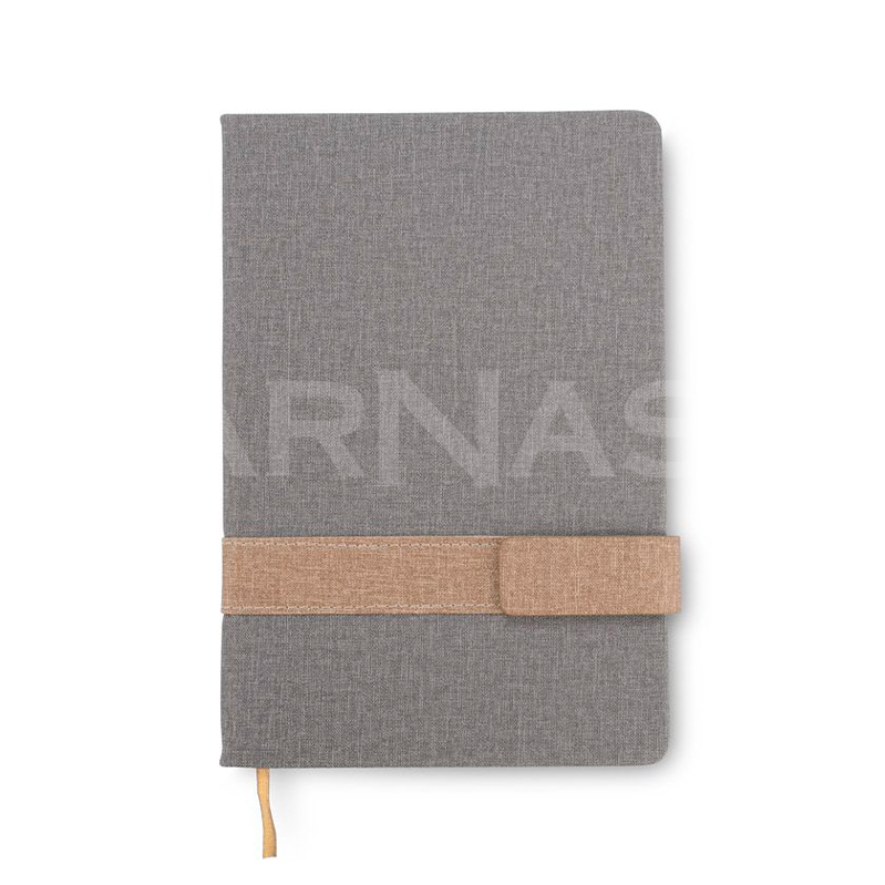 A5 piezīmju bloks ar magnētisku aizdari un melanžētu krāsu (pelēku vai zilu). 96 līniju lapas ar datuma atzīmi augšējā stūrī un grāmatzīmes lentīte ērtai lietošanai.