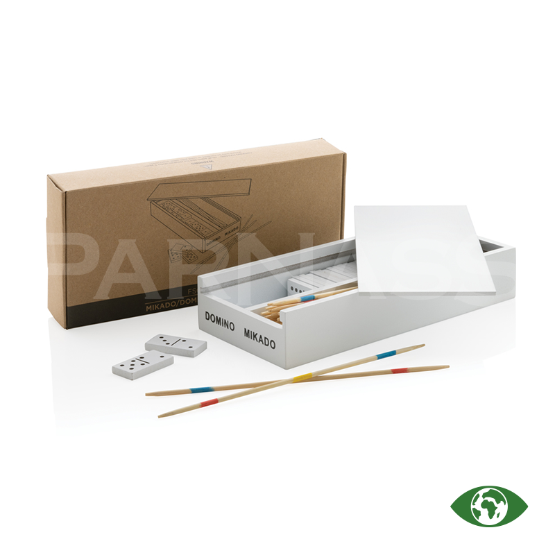 Šajā klasisko galda spēļu komplektā ietilpst dambrete un mikado. Komplektā ir 41 mikado spēles nūja un 28 domino kauliņi. Spēles ir iepakotas kompaktā koka kastē, ko viegli paņemt līdzi. Izgatavots no FSC® sertificēta koka.