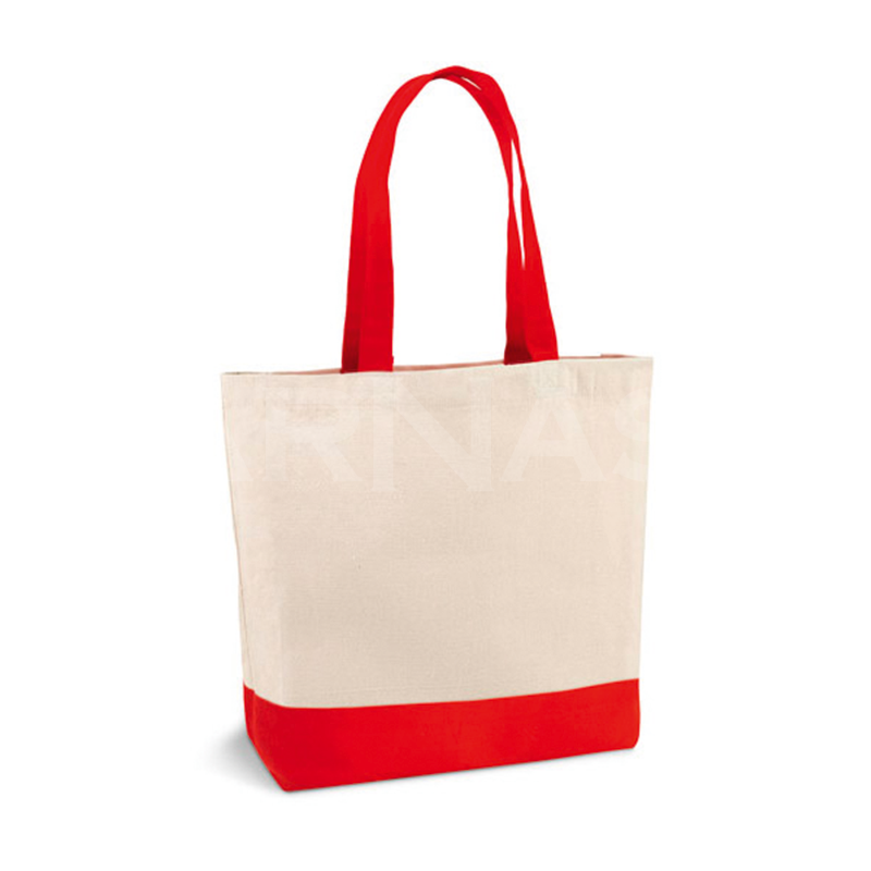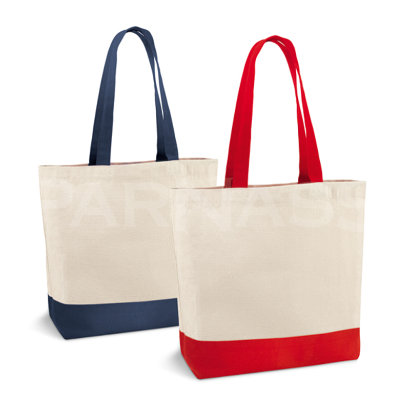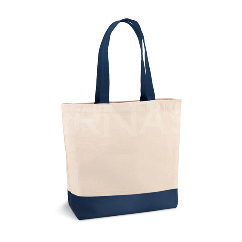 Klasiska, biezas nebalinātas kokvilnas soma ar kontrastējošas krāsas apakšu un rokturiem. Iekšpusē kabata. 65 cm rokturi.