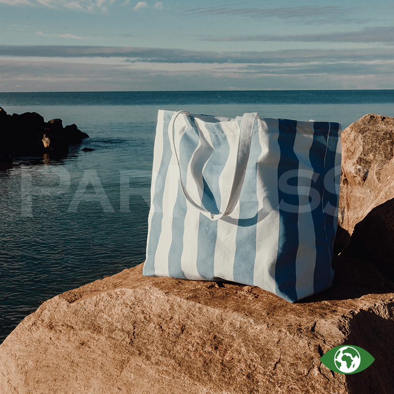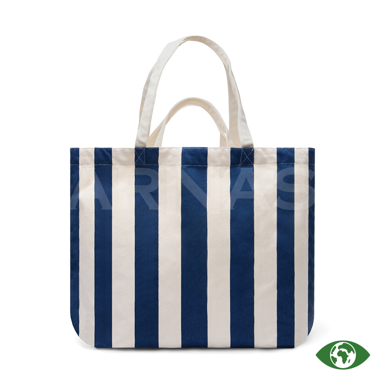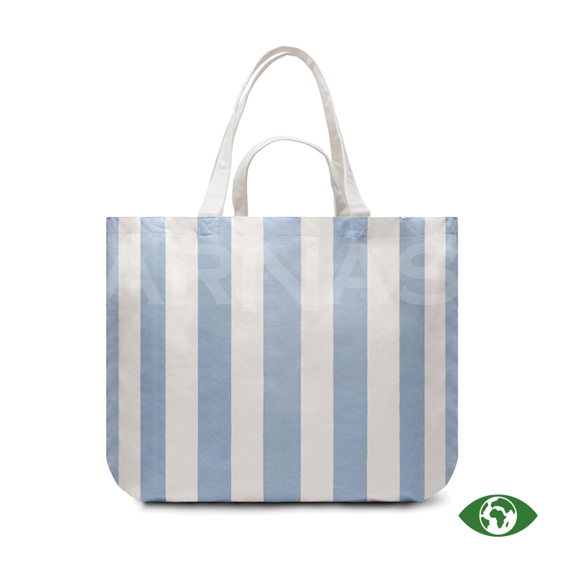 Ietilpīga pludmales soma ar garām pleca siksnām un īsākiem rokturiem ērtai nešanai. Izgatavota no bieza audekla, kas satur 69% pārstrādātu kokvilnu un 29% pārstrādātu poliesteru (GRS sertificēts).