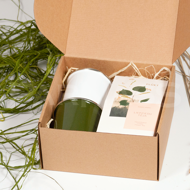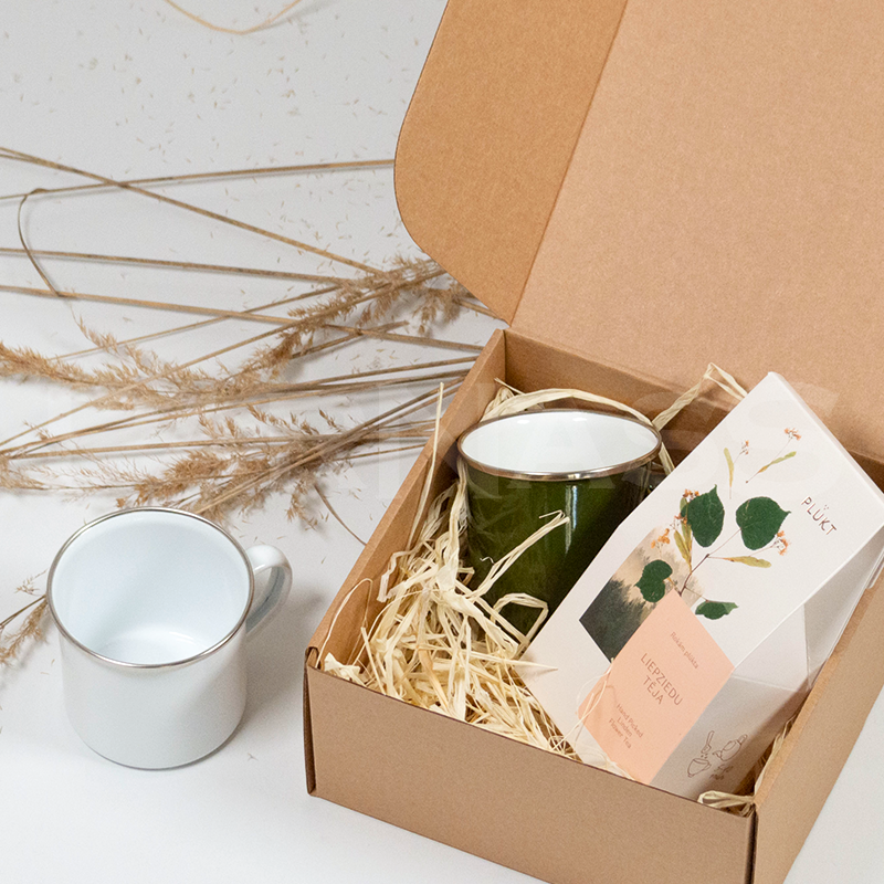 • Emaljētas metāla krūzes, 2 gab. • PLŪKT zāļu tēja kartona paciņā