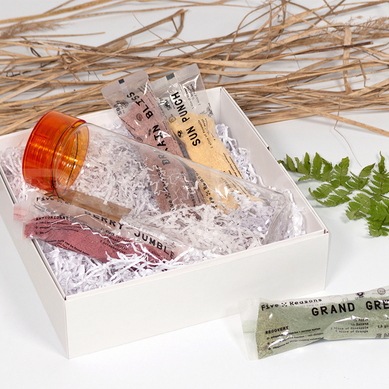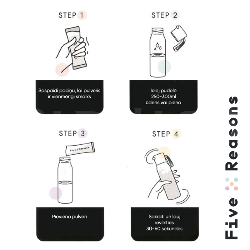 • RPET pudele smūtijam ar platu korķi COTT, 600 ml • 100% dabīgi augļu vai dārzeņu pulveri smūtijiem FIVE REASONS