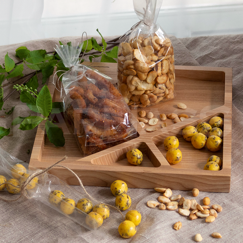 • Oša koka uzkodu trauks • Grauzdētas pupas “PUPUČI” • Ķiploku grauzdiņi • Šokolādes siera bumbas