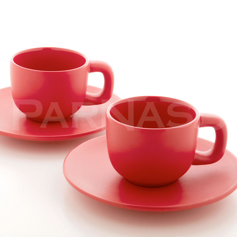Augstas kvalitātes keramikas espresso krūzīšu komplekts ar 2 krūzītēm un apakštasītēm. Ar matētu ārējo un spīdīgu iekšējo apdari.