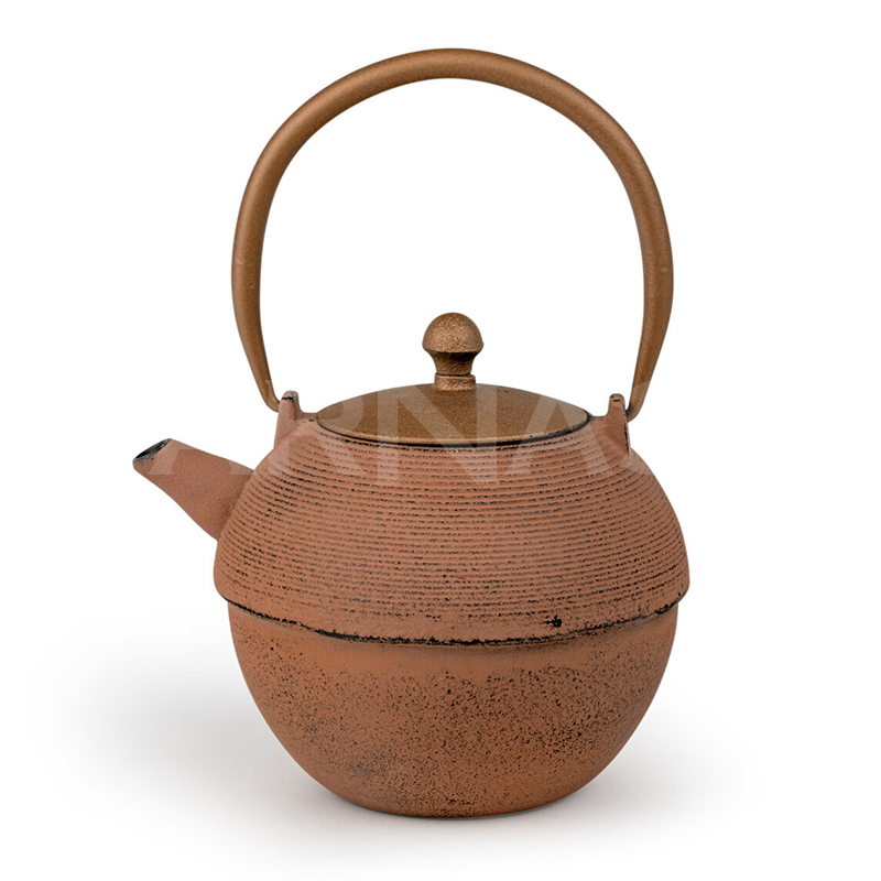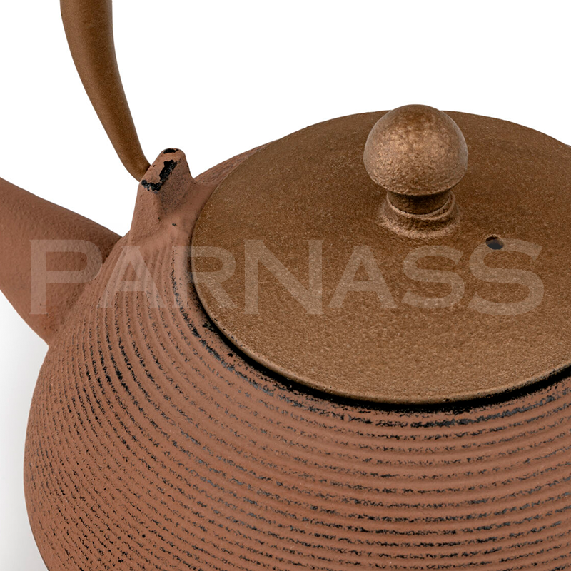 Čuguna tējkanna ar nerūsējošā tērauda tējas sietiņu. Iekšpuse ir emaljēta, tāpēc to ir viegli tīrīt.