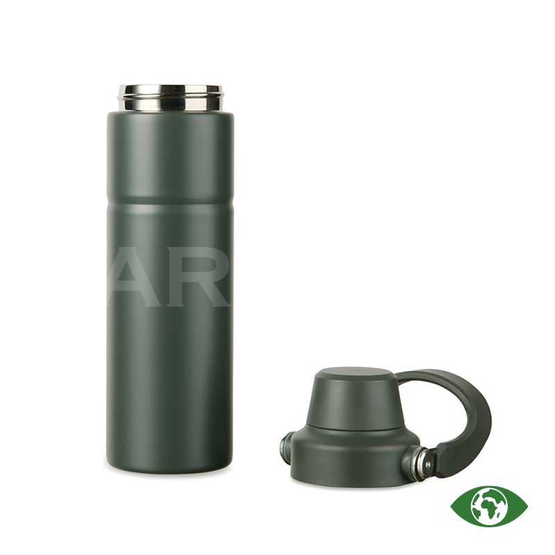 Moderna un izturīga dubultsienu vakuuma pudele, kas izgatavota no pārstrādāta nerūsējošā tērauda. Perfektai funkcionalitātei ar ērtu rokturi, ideāli piemērota piedzīvojumiem. Vākam ir divas atveres: ērts snīpis dzeršanai un lielāka atvere ērtai uzpildīšanai un tīrīšanai. Dubultsienu izolācija uztur dzērienu aukstu līdz pat 12 stundām un karstu līdz pat 4 stundām, nodrošinot atsvaidzinājumu visa ceļojuma laikā. Nav piemērota mazgāšanai trauku mazgājamajā mašīnā vai sildāma mikroviļņu krāsnī, tikai mazgāšanai ar rokām!
