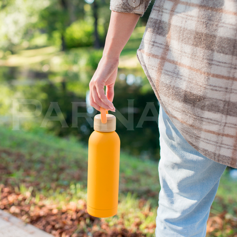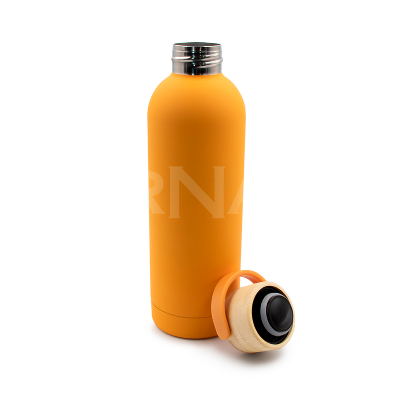 Termopudele ar dubultsienu nerūsējošā tērauda vakuuma izolāciju, kas ilgstoši saglabā dzēriena temperatūru. Ar gumijotu pārklājumu un bambusa vāku ar salokāmu silikona rokturi ērtai nešanai. Uztur dzērienus siltus līdz 20 stundām, hermētiska.