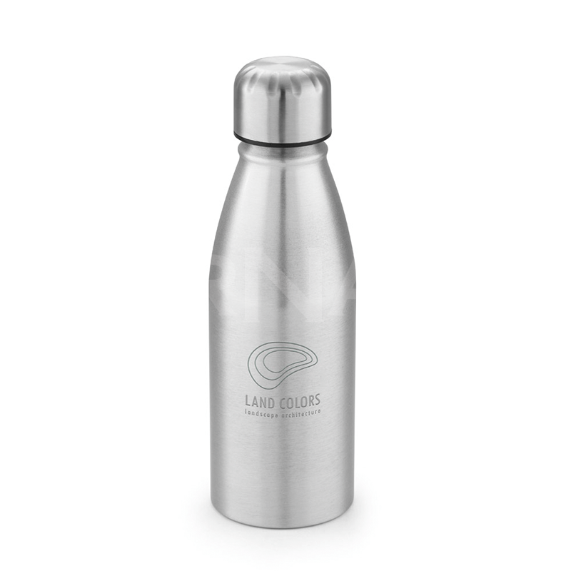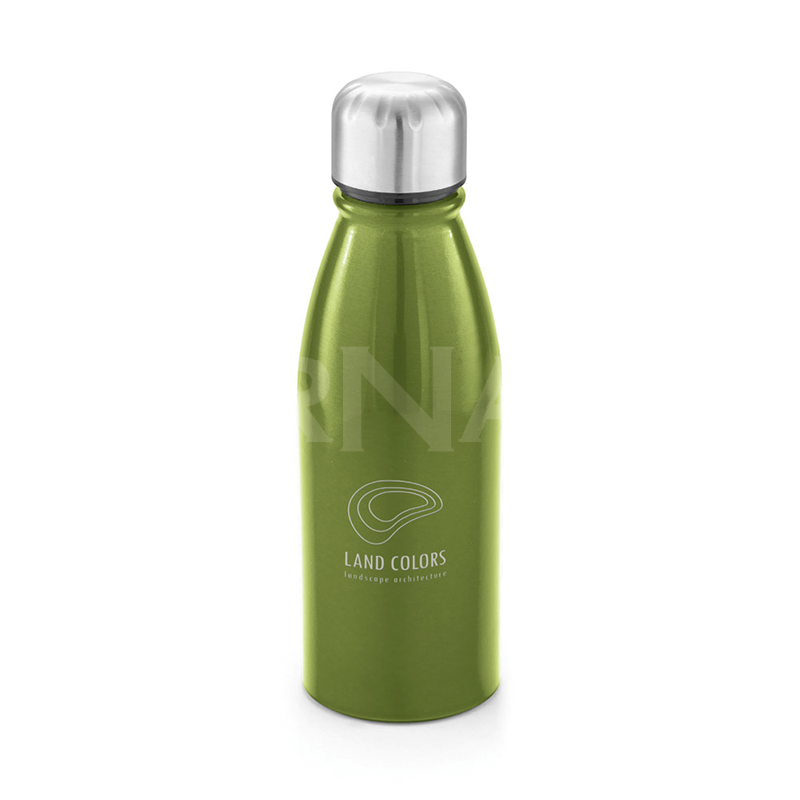 Alumīnija ūdens pudele ar skrūvējamu nerūsējoša tērauda korķi.