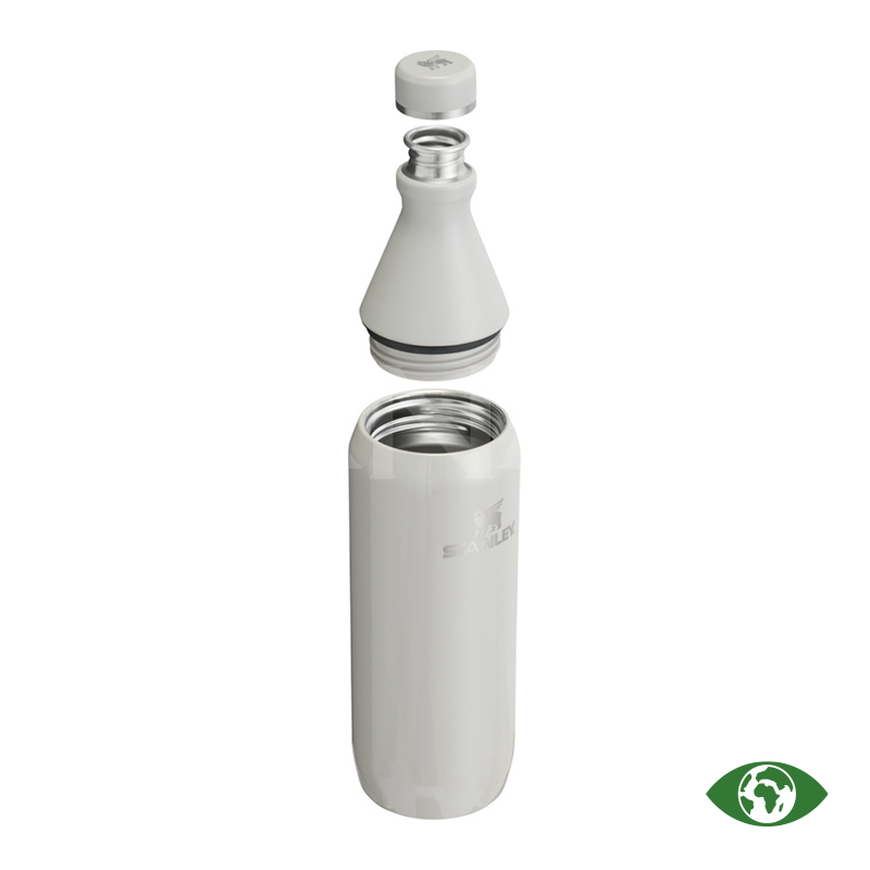 Stanley All Day Slim ūdens pudele izgatavota no pārstrādāta nerūsējošā tērauda. Divdaļīgais vāks ļauj viegli dzert un pievienot ledu, divsienu vakuuma izolācija uztur dzērienu temperatūru ilgstoši. Droša pret dzēriena izlīšanu un izturīga ikdienas lietošanai.