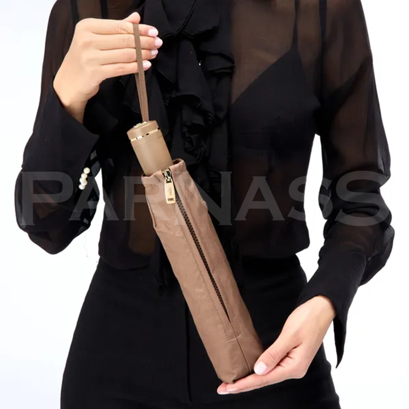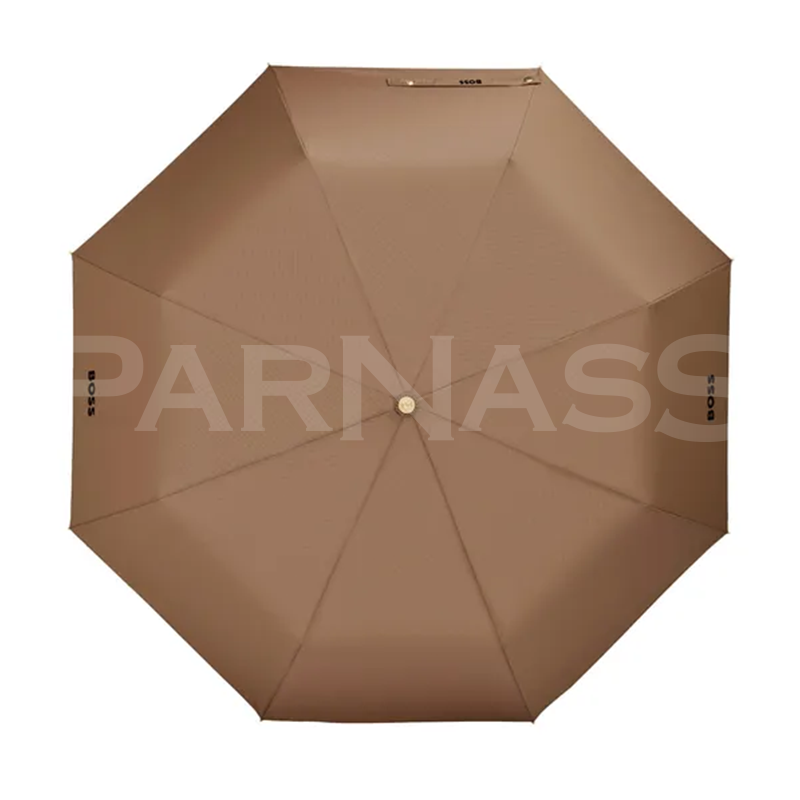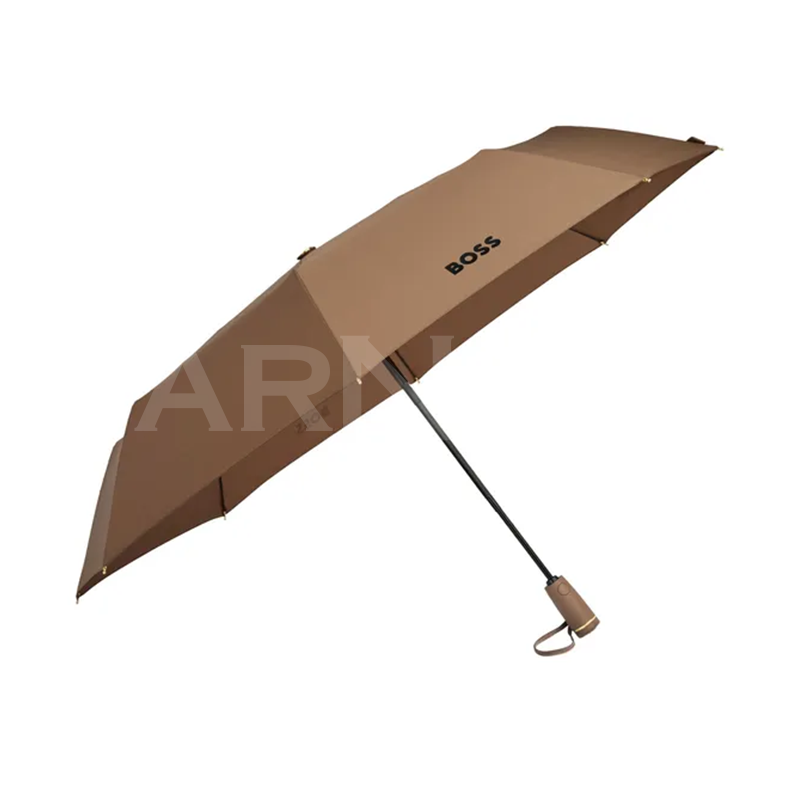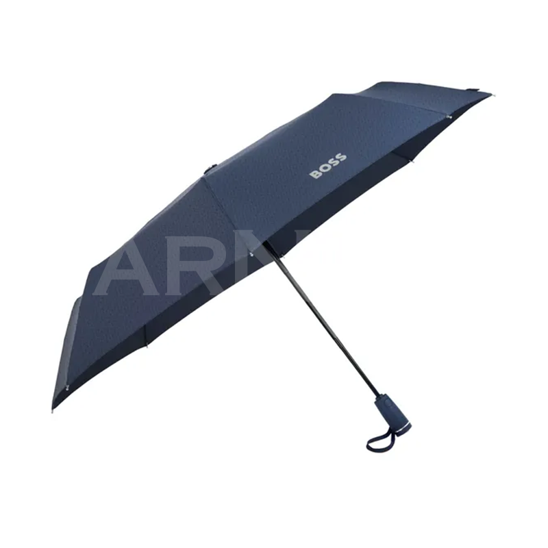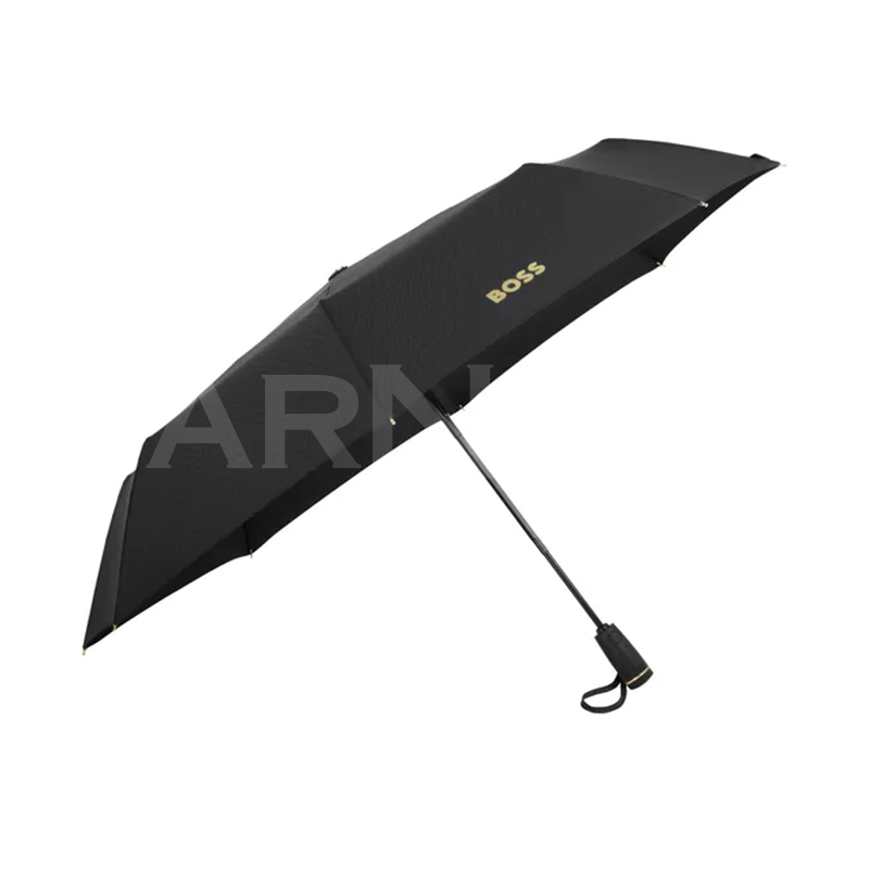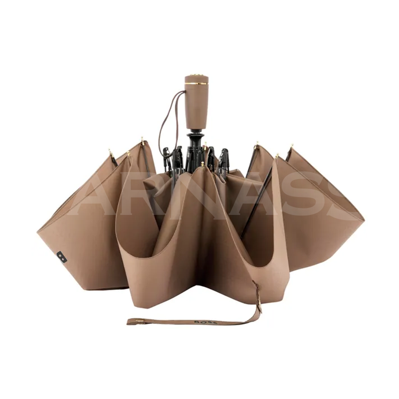 Saliekams luksusa lietussargs, viegls un ergonomisks, ar divkāršu automātisku atvēršanas un aizvēršanas sistēmu, ūdensnecaurlaidīgu audumu un rāvējslēdzēja somiņu. Roktura mīkstā gumijotā tekstūra un tonālā monogramma piešķir elegantu izskatu, papildinātu ar BOSS Double B logo ar metālisku apdari.