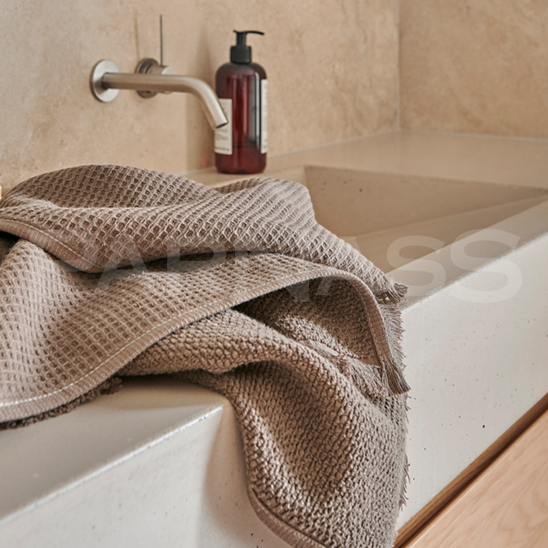 Frotē dvielis ir izgatavots no 100% mīkstas kokvilnas ar vafeļauduma struktūru vienā pusē un frotē otrā pusē.