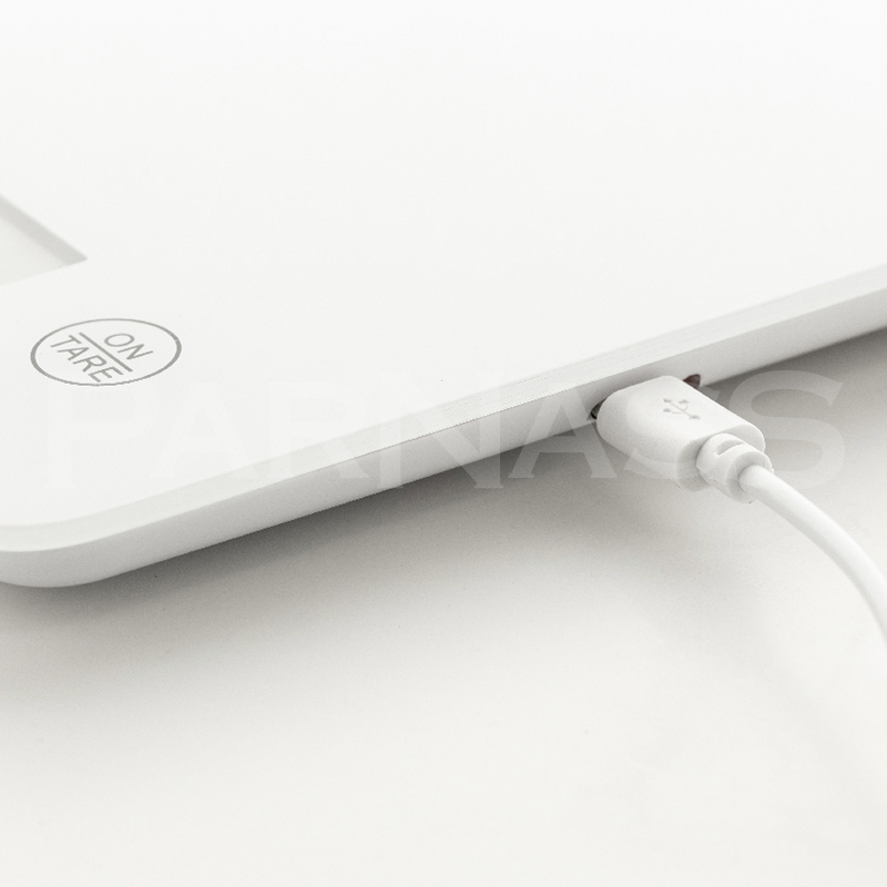 Digitālie virtuves svari ar rūdīta stikla svēršanas platformu un iebūvētu USB uzlādējamu akumulatoru (200 mAh). Celtspēja 5 kg, gradācija 1 g, mērvienības g/oz. Ar ūdens/piena ml indikatoru. Iekļauts USB uzlādes kabelis.