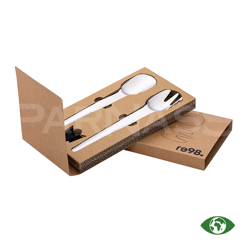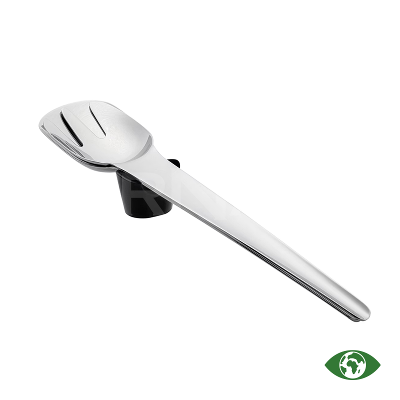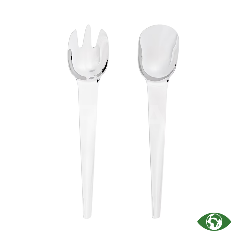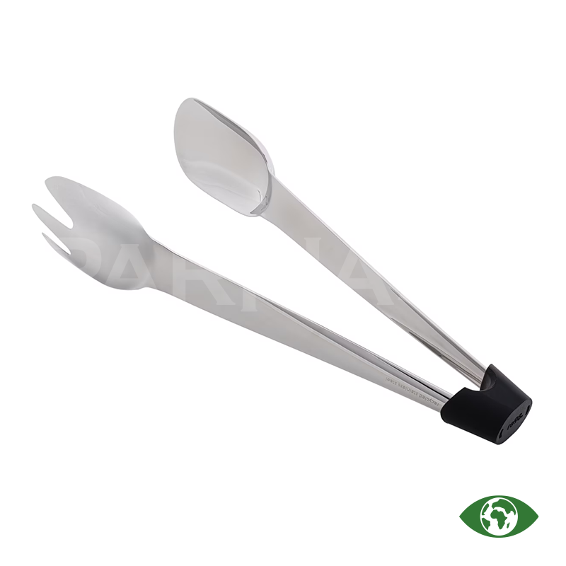 Elegants salātu servēšanas komplekts. Silikona turētāju var izmantot kā paliktni, statīvu vai knaibles, nodrošinot ērtu pasniegšanu. Izgatavots no kvalitatīva pārstrādāta nerūsējošā tērauda, izturīgs un piemērots trauku mazgājamai mašīnai.