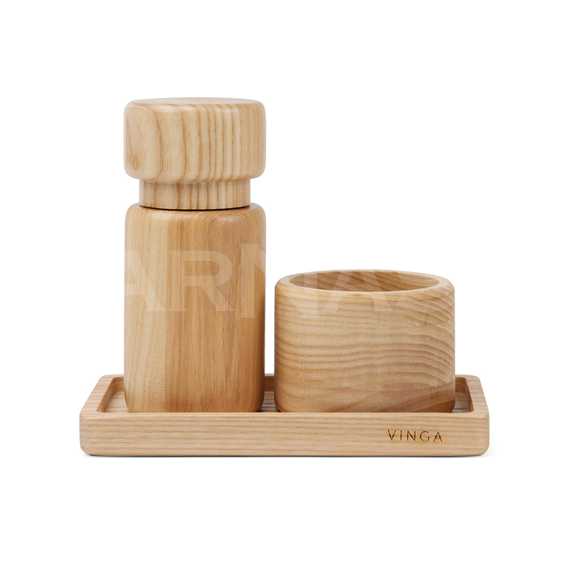 Klasisks skandināvu dizaina sāls un piparu trauku komplekts, izgatavots no FSC sertificēta oša koka. Piparu dzirnaviņas ar regulējamu keramikas mehānismu precīzai malšanai, ļaujot ērti pārslēgties starp rupjiem un smalkiem graudiem atbilstoši savai gaumei. Komplektā ietilpst jauks sāls trauciņš un praktiska paplāte, lai notvertu nomaldījušos sāli vai piparu graudus. Šis komplekts piešķir izsmalcinātību jebkurai videi gan mājās, gan restorānā.