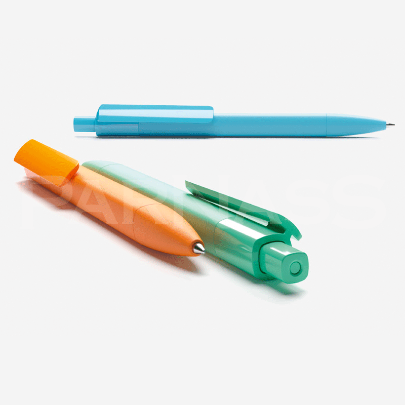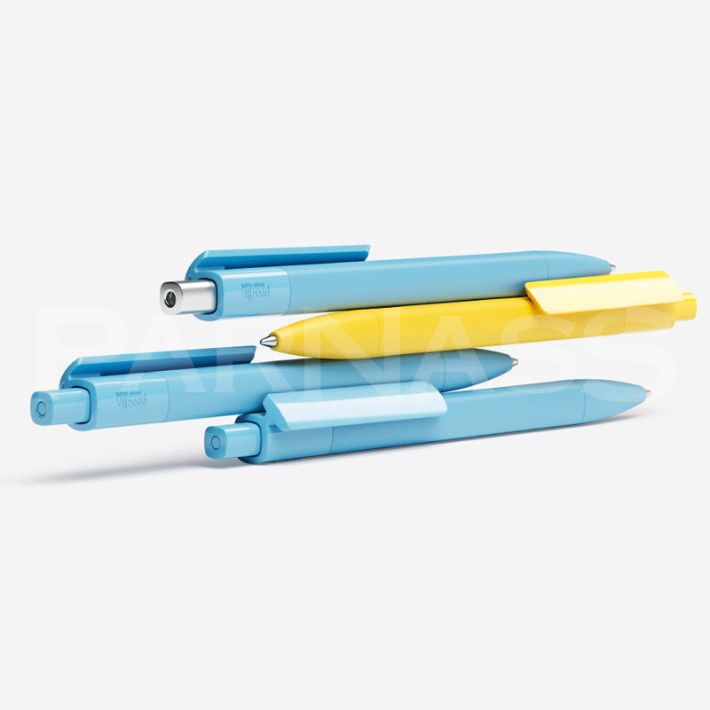 Kombinējamas dažādu krāsu un virsmu detaļas, pieejama arī metāla poga. Lodīšu tintes (1 mm vai 1,4 mm) vai gēla (0,5 mm vai 0,7 mm) pildījuma izvēles iespēja zilā un melnā krāsā.