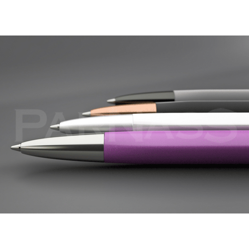 Kombinējamas dažādu krāsu un virsmu detaļas, pieejams arī metāla uzgalis. Lodīšu tintes (1 mm vai 1,4 mm) vai gēla (0,5 mm vai 0,7 mm) pildījuma izvēles iespēja zilā un melnā krāsā, kā arī mehāniskais zīmulis!