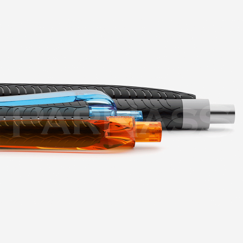 Kombinējamas dažādu krāsu un virsmu detaļas, pieejams arī metāla klipsis un poga. Lodīšu tintes (1 mm vai 1,4 mm) vai gēla (0,5 mm vai 0,7 mm) pildījuma izvēles iespēja zilā un melnā krāsā.