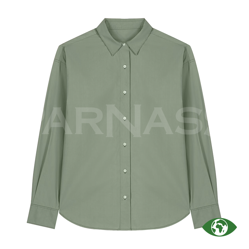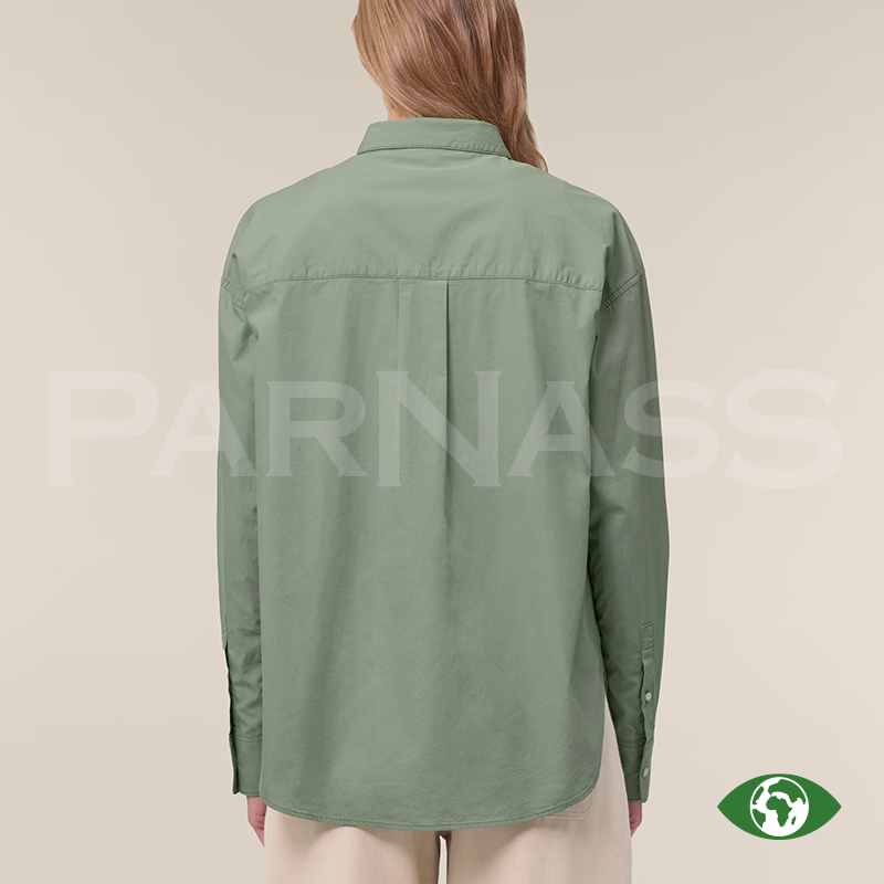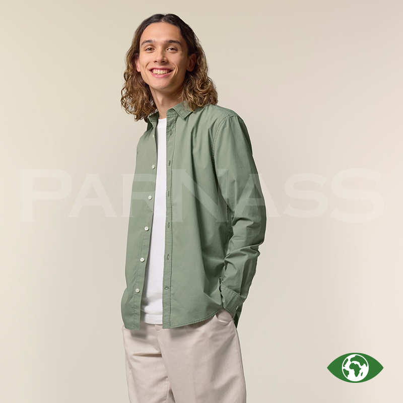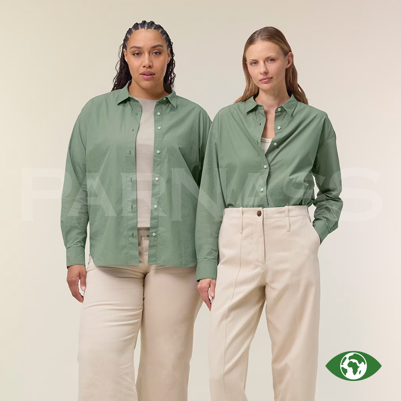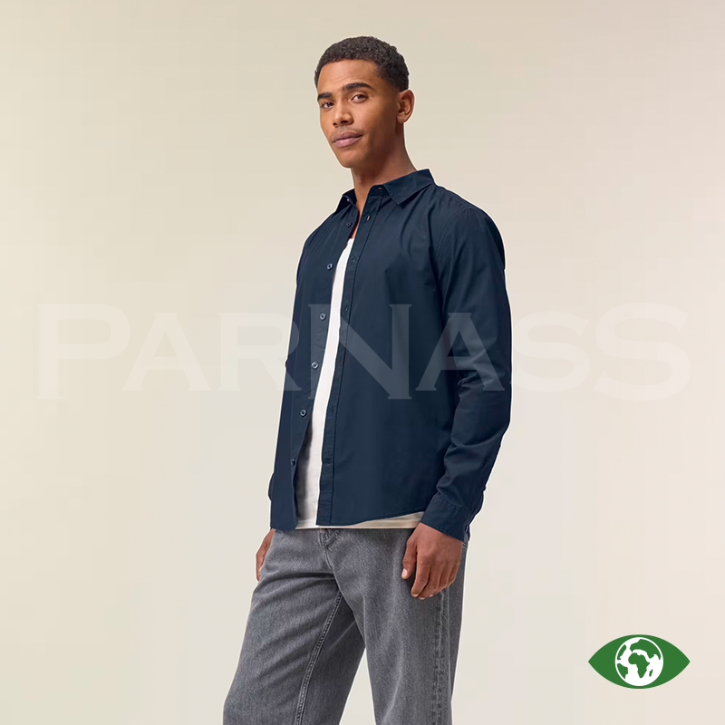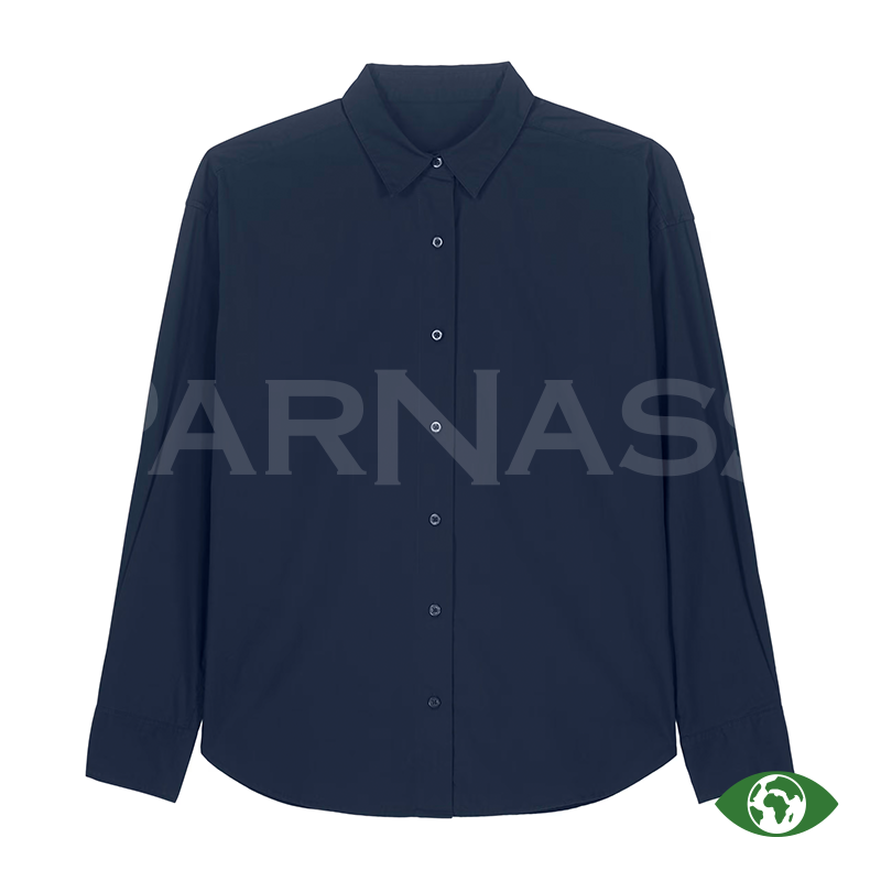 Vīriešu krekls vai sieviešu blūze no organiskas kokvilnas poplīna ar modernu, vidēji piegulošu piegriezumu. Viegls un elpojošs (130 g/m²), piemērots apdrukai un izšūšanai. Elegantas detaļas, piemēram, divu pogu aproces un krokojums mugurpusē, nodrošina labu piegulumu.