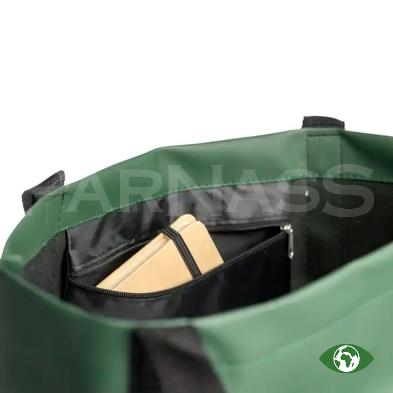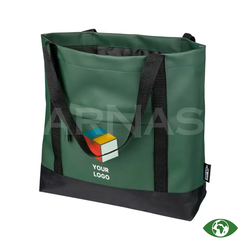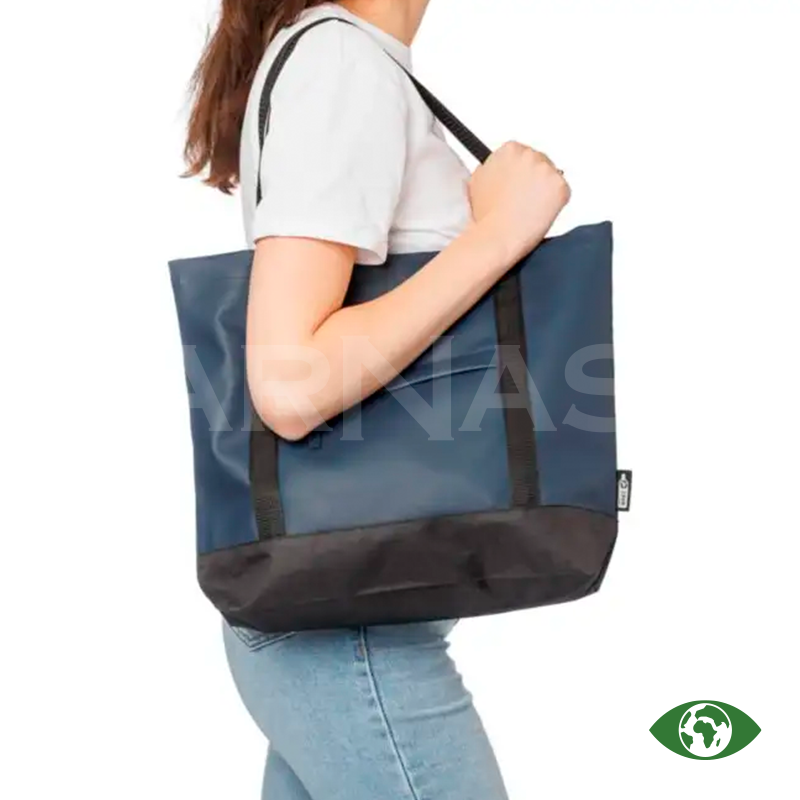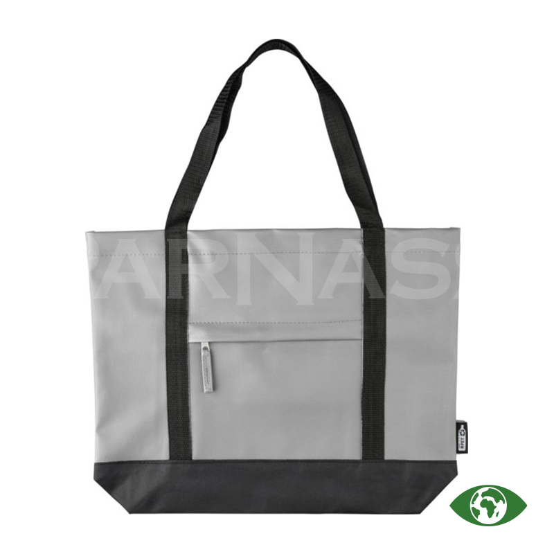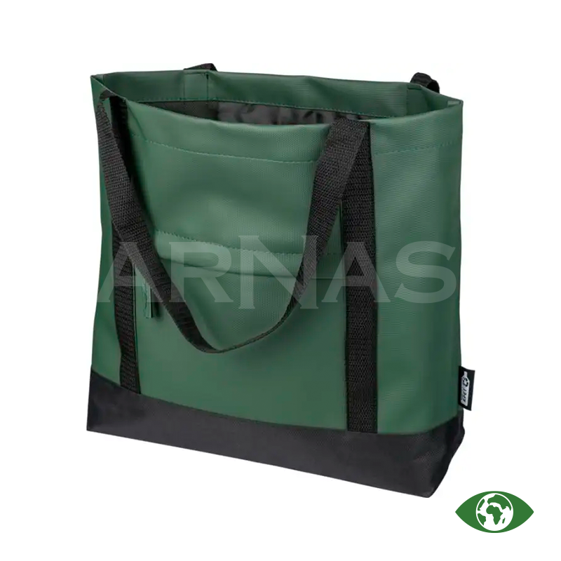 rPET (600D) poliestera iepirkumu soma ar PU pārklājumu abās pusēs, kas ir ūdeni atgrūdošs. Somai ir priekšējā kabata ar rāvējslēdzēju, neliela iekšējā kabatiņa un gari rokturi. Tilpums 10 litri, maksimālais svars 10 kg.