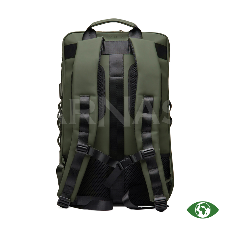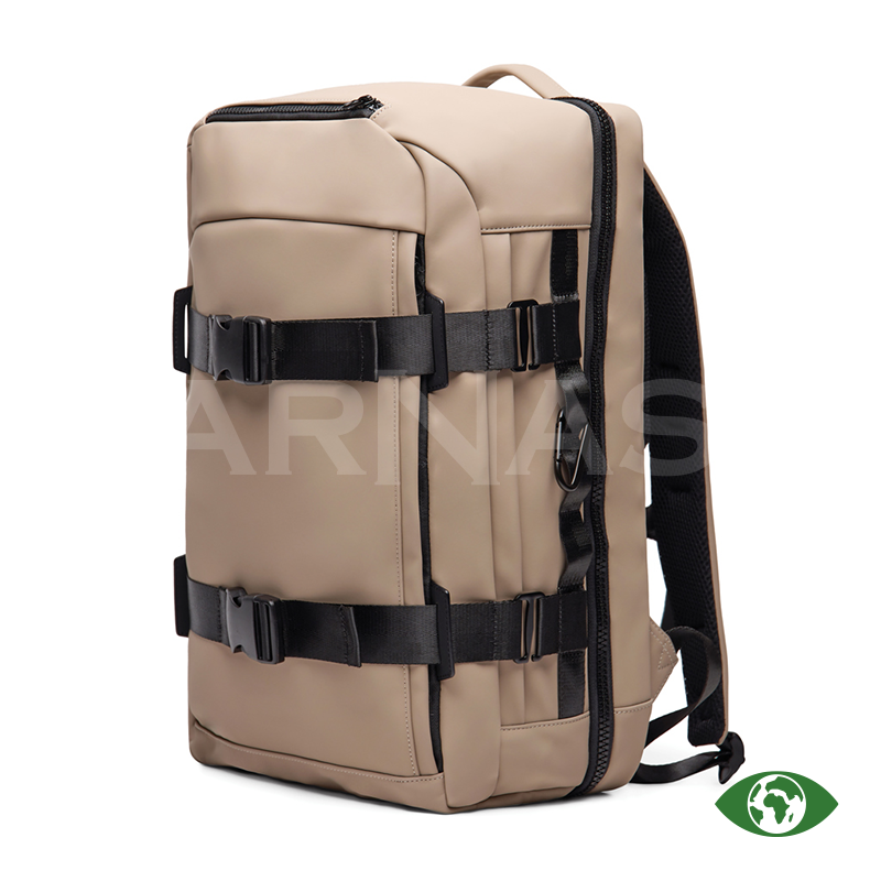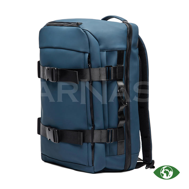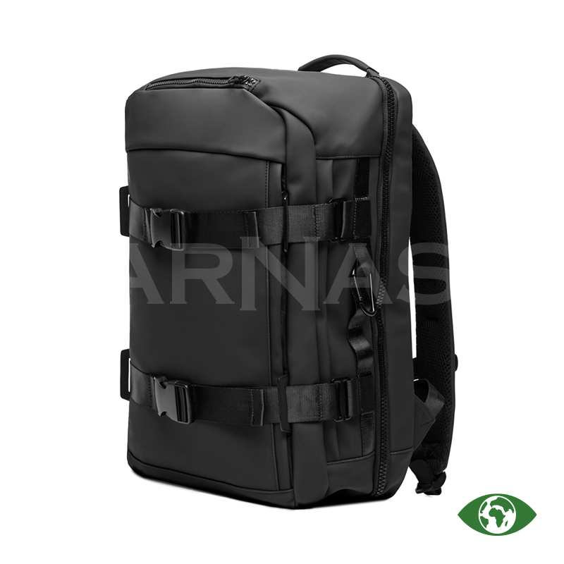Ceļojumu mugursoma ar PU pārklājums, ērtām plecu siksnām un muguras polsterējumu. Tā ir pilnībā atverama ērtai piekļuvei. Mugursomā ir klēpjdatora nodalījums, divas ārējās kabatas, plaša iekšējā tīkla kabata, augšējais rokturis un karabīne sānā. Aizmugurē esošā siksna ļauj to piestiprināt pie ceļojuma kofera, bet sānu rāvējslēdzis nodrošina ātru piekļuvi galvenajam nodalījumam.