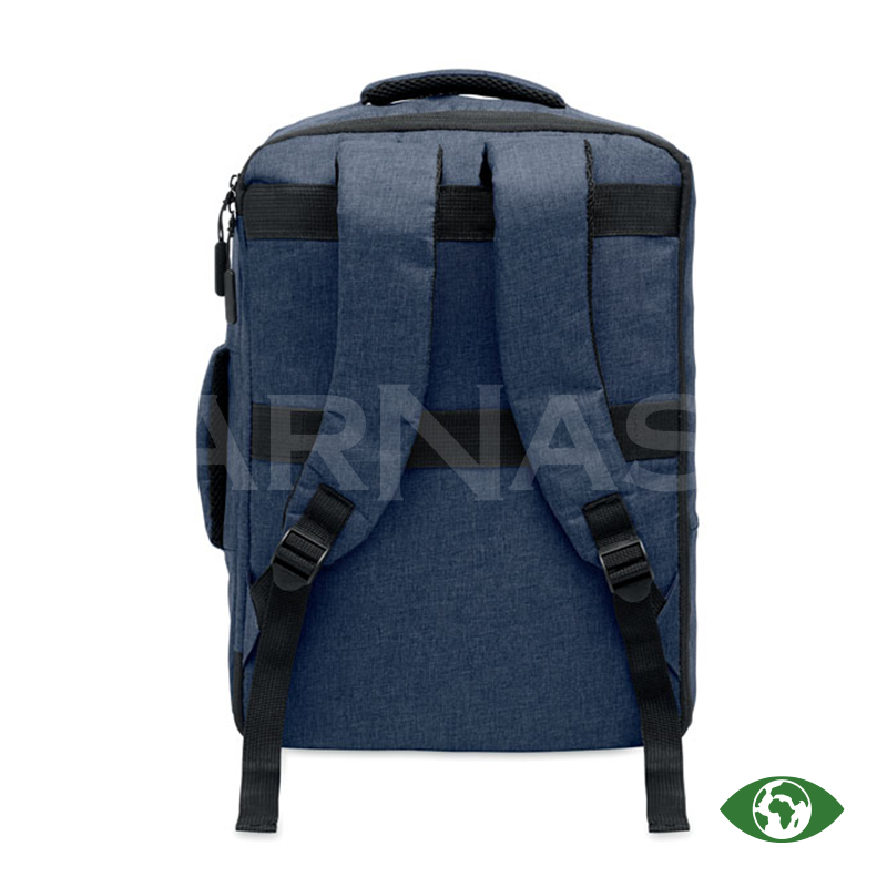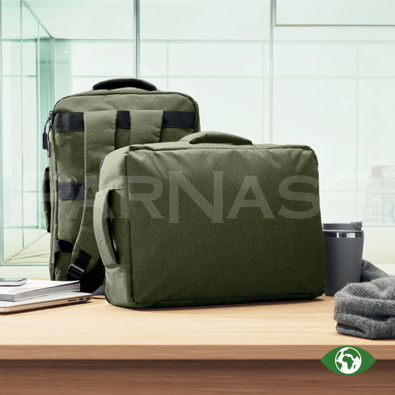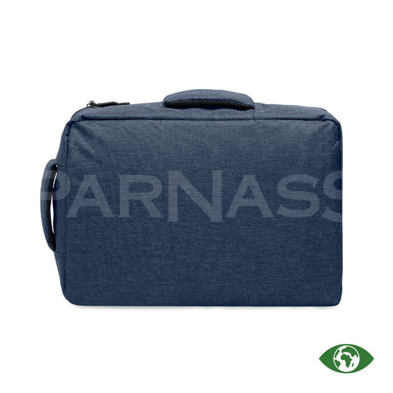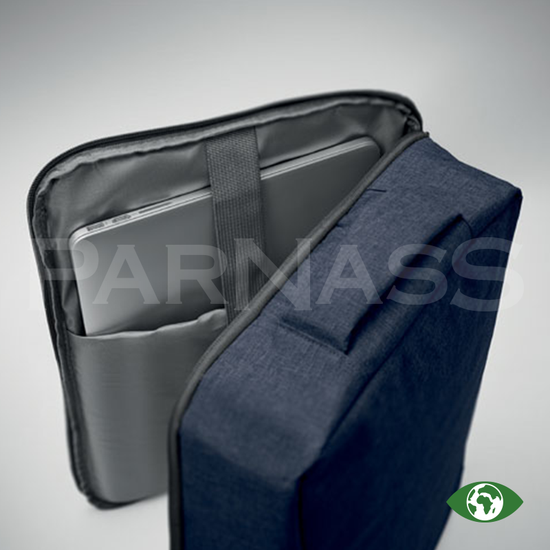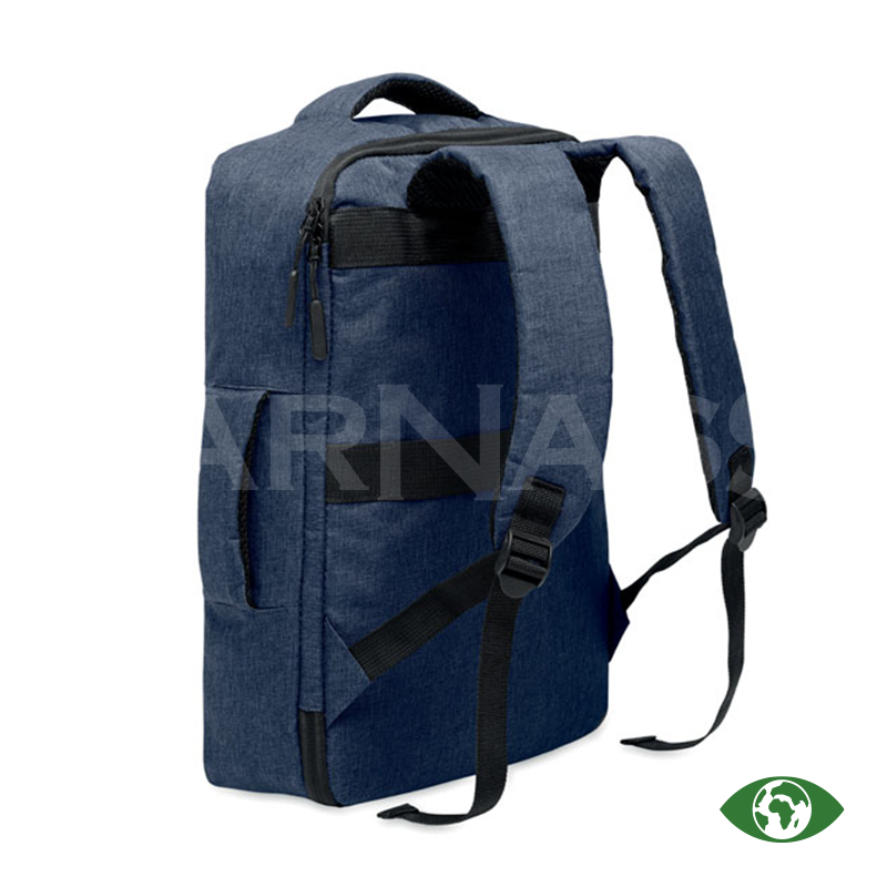 No otrreiz pārstrādāta PET izgatavota klēpjdatora mugursoma ar 180 grādu atvēršanu. Somai ir 15 collu klēpjdatora nodalījums, 2 iekšējās kabatas, 2 iekšējās pildspalvu kabatas un 2 polsterēti rokturi. Mīkstas, polsterētas muguras un plecu siksnas.
