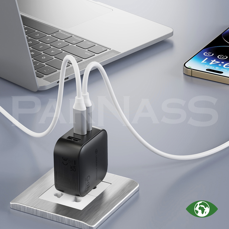 Jaudīgs 70W PD GaN lādētājs ar ES, ASV un Lielbritānijas kontaktligzdām, ātru Type-C portu un papildus USB-A portu maksimālai daudzpusībai. GaN tehnoloģija nodrošina kompaktu izmēru, mazāku sakaršanu un augstāku energoefektivitāti, ļaujot ātri uzlādēt arī klēpjdatorus. Izgatavots no RCS sertificēta pārstrādāta ugunsdroša PC materiāla.