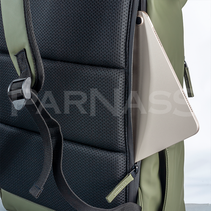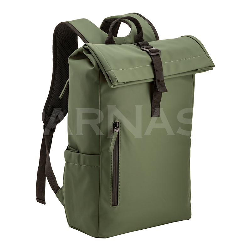 Ūdensizturīga Soft PU mugursoma ar polsterētu nodalījumu klēpjdatoram (15"). Liels galvenais nodalījums, priekšējā kabata ar rāvējslēdzēju un ārējās kabatas pudelei. Polsterēta mugura un plecu lences ar elpojošu materiālu.