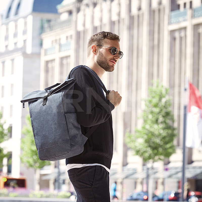Pārstrādātu PET pudeļu materiāla soma. Ērta, praktiska, ietilpīga mugursoma ar aizlokāmu augšmalu, aiztaisāmu ar klipsi. Rāvējslēdzēja aizdare. Polsterēts iekšējais nodalījums. Sānu kabatas. Polsterētas plecu lences.