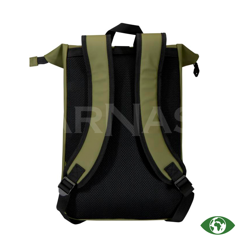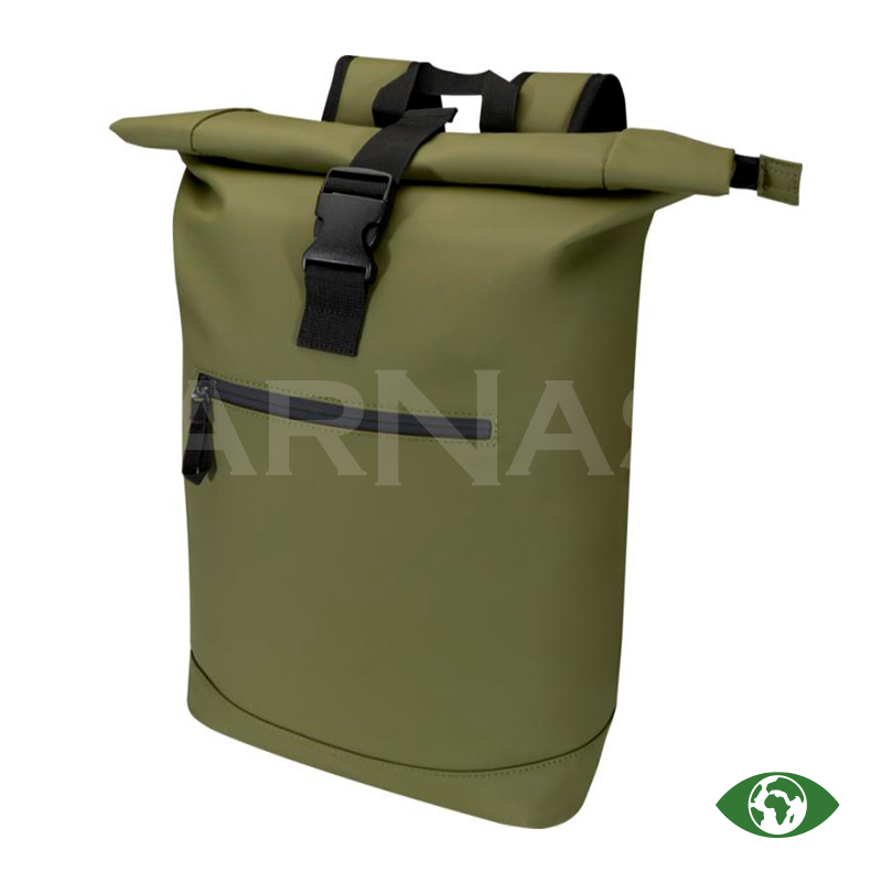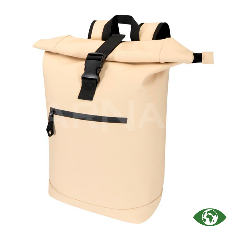 Rolltop mugursoma izgatavota no augstvērtīgas pārstrādātas PU ādas ar saskaņotu RPET oderi. Ūdensizturīgā apdare pasargā mantas, bet rolltop aizdare nodrošina ērtu piekļūšanu somas saturam. Iekšpusē ir polsterēts nodalījums klēpjdatoram līdz 15,6 collu izmēram un rāvējslēdzēja kabata sīklietām. Ārpusē – priekšējā kabata ar ūdensdrošu rāvējslēdzēju, kā arī polsterētas, regulējamas lences.