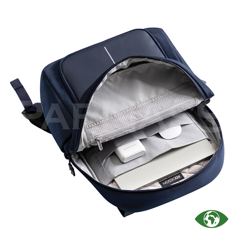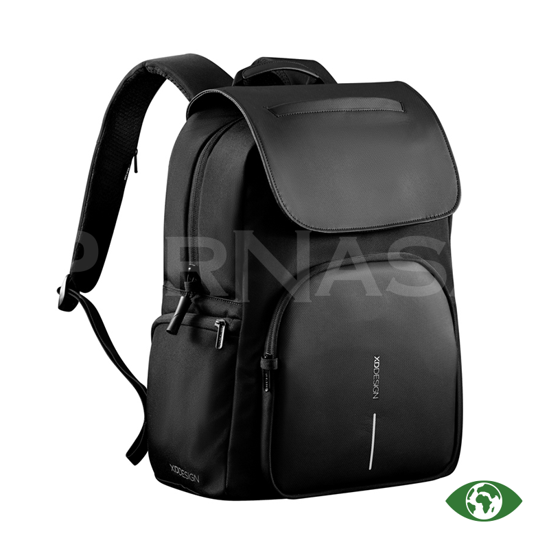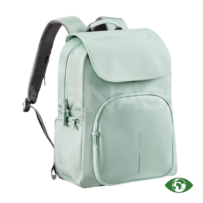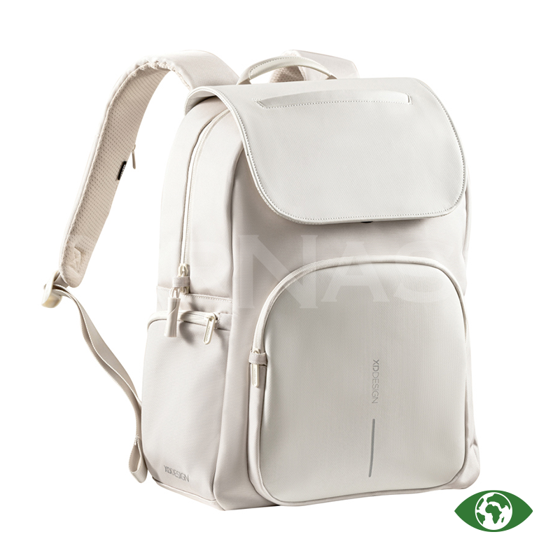 Soft Daypack ir ideāla mugursoma ikdienas lietošanai. Tā ir izgatavota no kvalitatīviem un izturīgiem materiāliem – 1200D RPET auduma un teksturēta PU materiāla, kas nodrošina gan ilgmūžību, gan modernu izskatu. Drošībai soma aprīkota ar pretzādzību atloku, Fidlock aizdari un rāvējslēdzējiem ar pagriežamu slēdzeni. Atsevišķs nodalījums paredzēts līdz 16 collu klēpjdatoram, savukārt RFID aizsargāta kabata pasargā kartes un personīgos datus. Izgatavota no pārstrādāta RPET materiāla ar AWARE™ tehnoloģiju, kas garantē īsta pārstrādāta auduma izmantošanu.