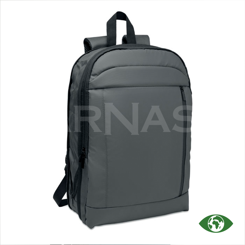 Paplašināma 16 collu klēpjdatora mugursoma no 600D RPET poliestera ar PU pārklājumu priekšpusē un RPET poliestera oderi. Aprīkota ar slēptu kabatu ar rāvējslēdzēju, polsterētu klēpjdatora nodalījumu, priekšējo nodalījumu, elpojošu sieta muguras daļu un siksnu piestiprināšanai pie ceļojumu kofera.