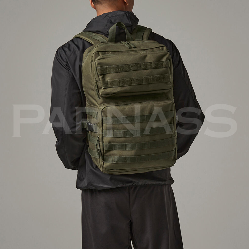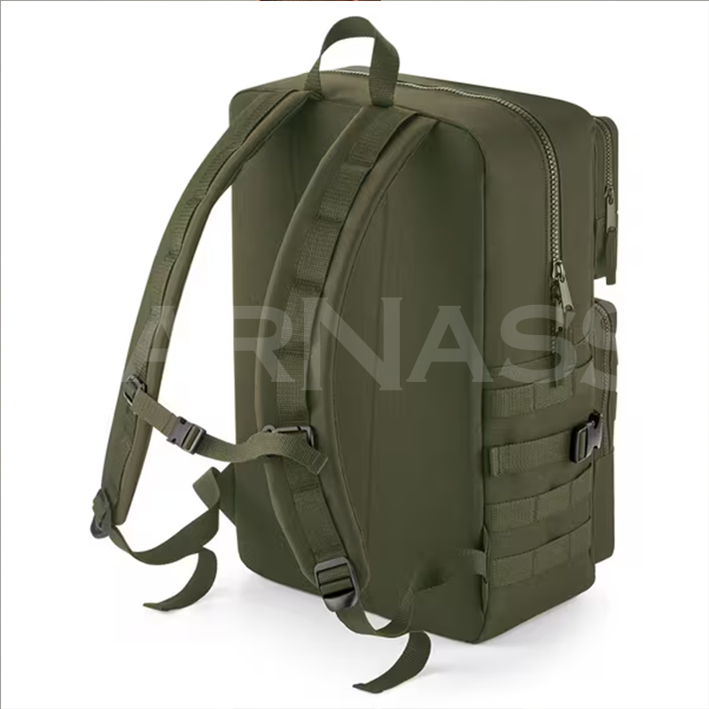 Militāra dizaina mugursoma, kas izgatavota no 100% 600D poliestera. Soma ir aprīkota ar rokturi, kompresijas siksnām un polsterētām, regulējamām plecu lencēm, kā arī polsterētu muguras daļu. galveno nodalījumu ar rāvējslēdzēju un iekšējo kabatu, kā arī divām lielām priekšējām kabatām ar rāvējslēdzējiem.