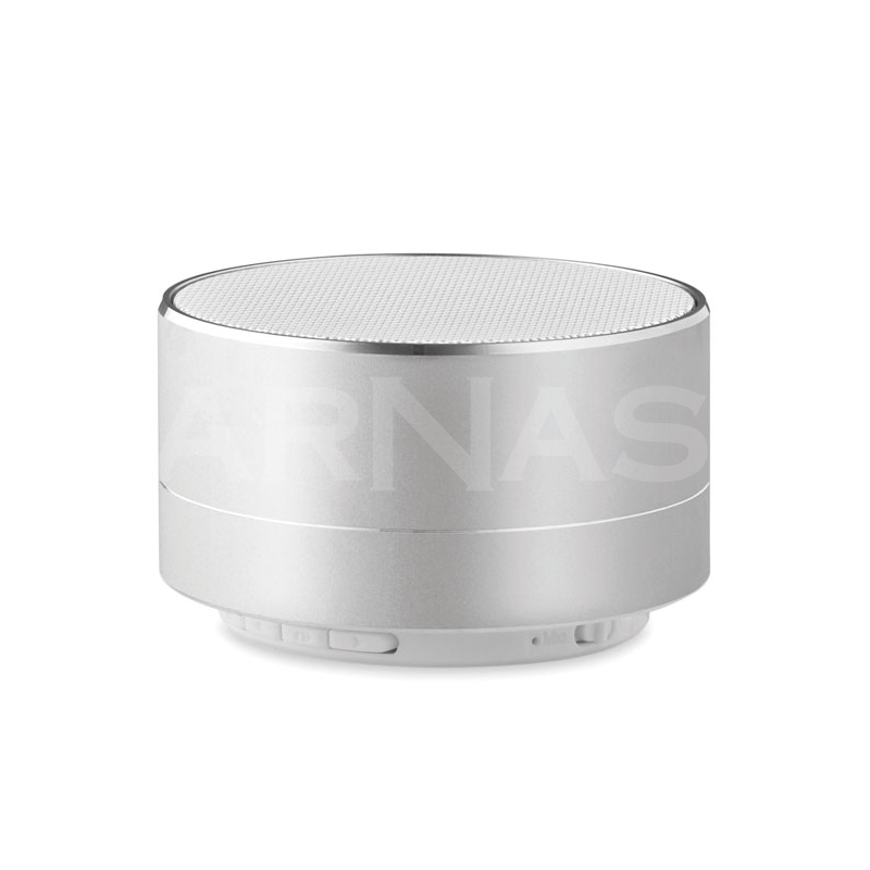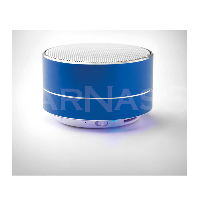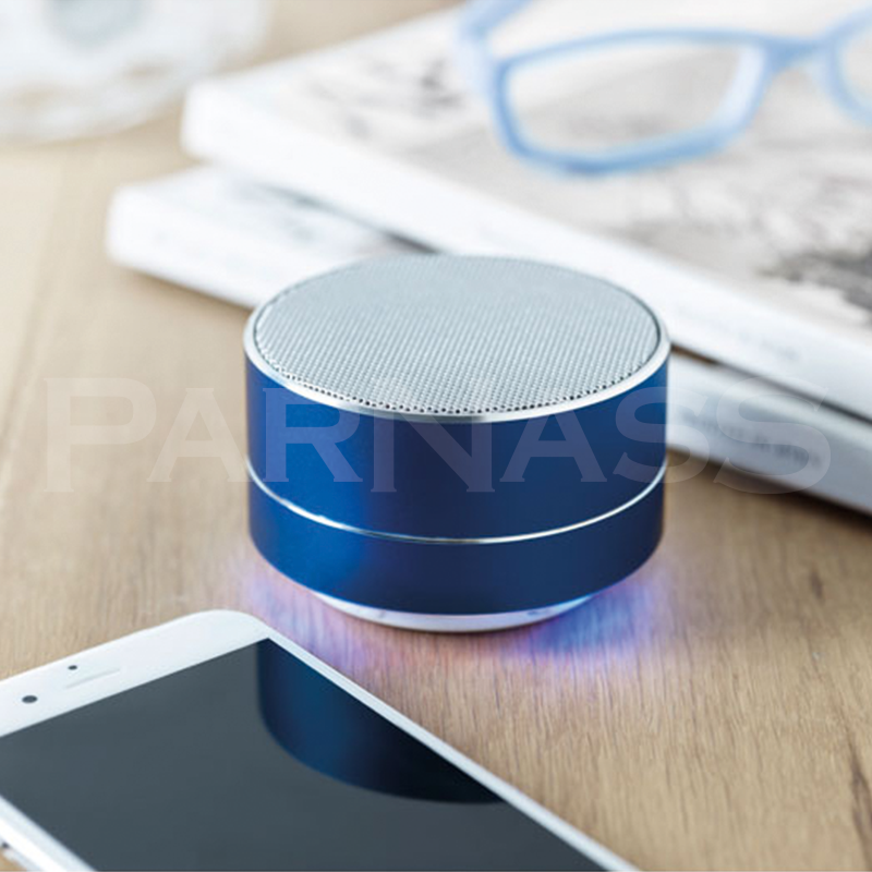 Alumīnija 4.2 Bluetooth skaļrunis ar uzlādējamu Li-on 450mAh akumulatoru un LED gaismiņu skaļruņa apakšā. Izejas dati: 3W, 4 Ohm un 5V. Komplektā mikro USB kabelis. Spēles laiks apm. 3h.