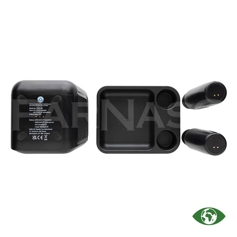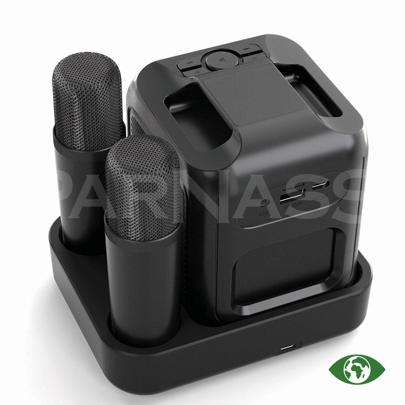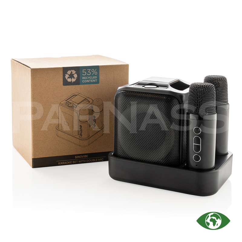 Karaoke komplekts ar diviem mikrofoniem, kas ļauj dziedāt stereo. Komplektā ir 5 W skaļrunis ar 2000 mAh akumulatoru līdz 6 stundu darbībai, atbalsta TF karti un USB, kā arī indukcijas uzlādes bāze mikrofonam un skaļrunim. Mikrofonus var lietot līdz 10 m attālumā no skaļruņa. Izgatavots no RCS sertificēta pārstrādāta ABS (53 % pārstrādāts materiāls), Komplektā Type-C uzlādes kabelis no RCS TPE.