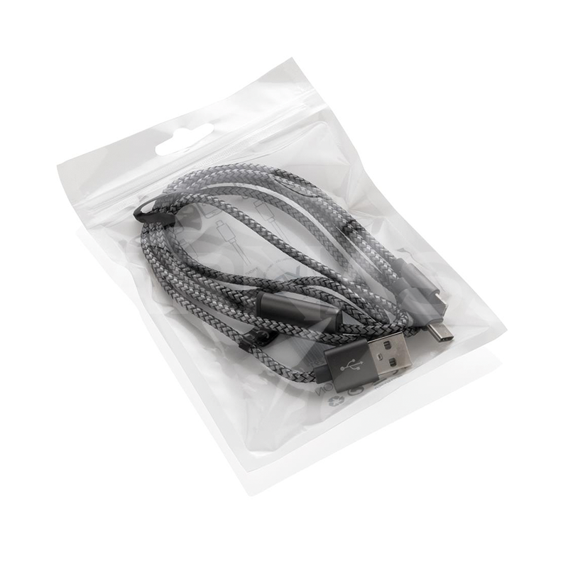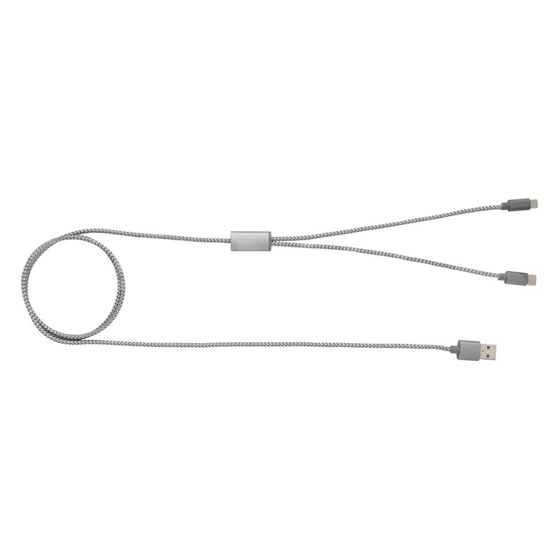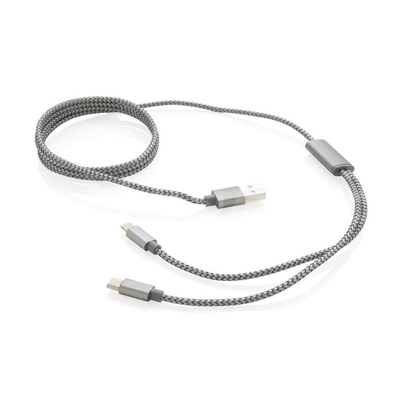 Grezns, pīts 3 vienā kabelis ar C tipa un divpusēju savienotāju iOS un Android ierīcēm, kurām nepieciešams micro USB. Pīts neilona materiāla kabelis ar savienotājiem, kas izgatavoti no izturīga alumīnija. Piemērots uzlādēšanai. Garums 120 cm.